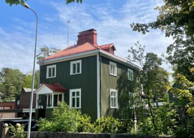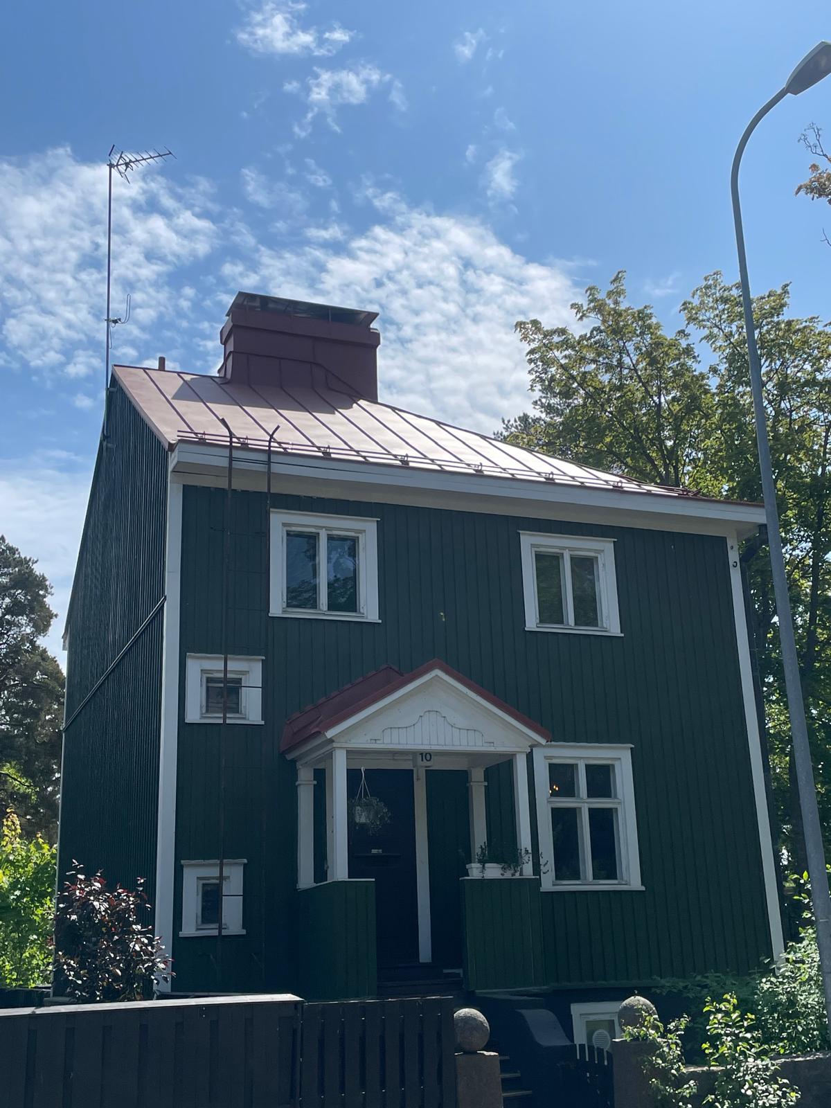 Ennen maalausta katto puhdistetaan perusteellisesti, poistetaan irtonainen lika, sammal ja vanha maalipinta. Tämä on tärkeä vaihe, sillä se varmistaa maalin hyvän tarttumisen ja pitkäikäisyyden. Tarvittaessa teen myös pieniä korjauksia, kuten saumojen tiivistystä tai vaurioituneiden osien vaihtoa, jotta maalausjälki olisi mahdollisimman tasainen ja kestävä.