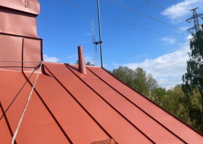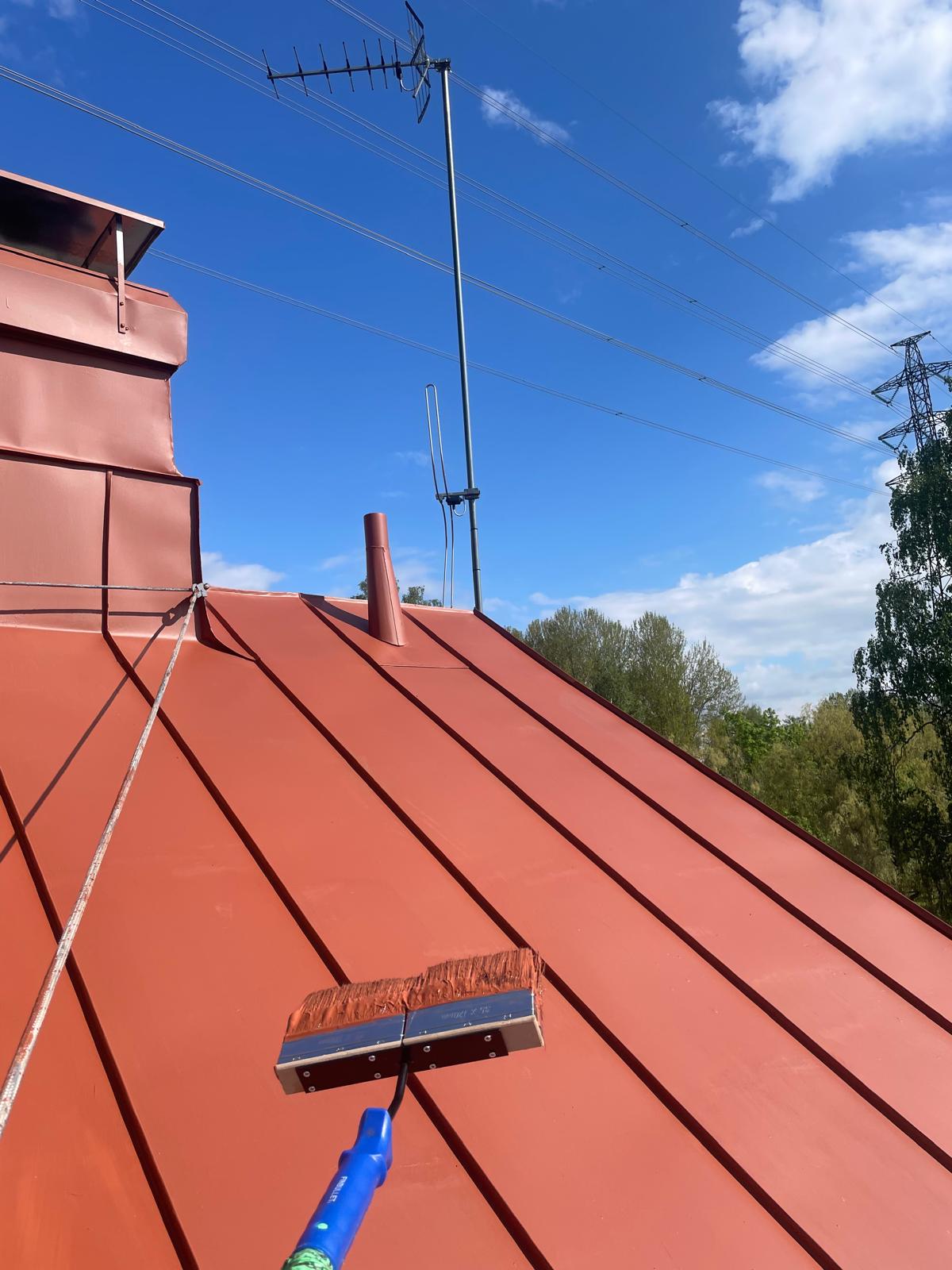 Maalaus tehdään huolellisesti ja ammattitaitoisesti. Käytän korkealaatuisia, ympäristöystävällisiä maaleja, jotka kestävät UV-säteilyä, kosteutta ja suuria lämpötilanvaihteluita. Maali levitetään tasaisesti koko kattopinnalle, varmistaen yhtenäisen ja siistin lopputuloksen. Konesaumakattojen maalaus vaatii erityistä tarkkuutta saumausten kohdalla, jotta ne pysyvät tiiviinä ja suojattuina.